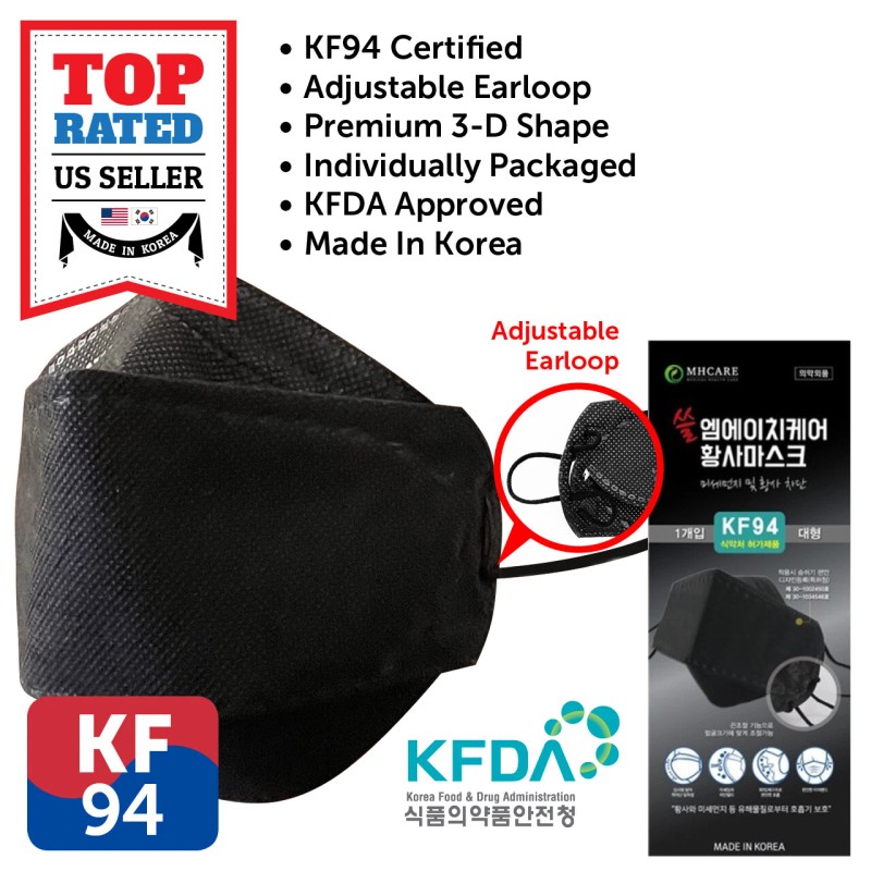 MHCARE 2-10 Individual Pack KF94 BLACK Face Mask Safety Protective Adult Made In Korea - 2 PCS MASK