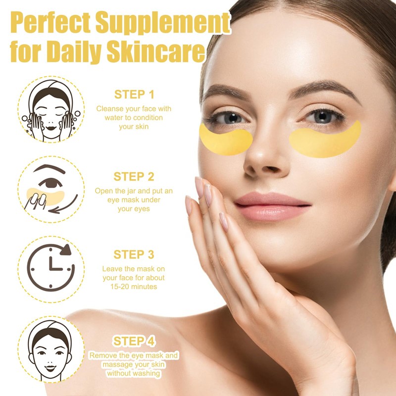 - [Safe and effective formula]: eye pads gold is rich in high-quality collagen, 24K nanogold and hyaluronic acid as well as natural plant extracts. Eye pad can quickly penetrate the basal layer to soothe, restore and protect the skin around the beautiful eyes.