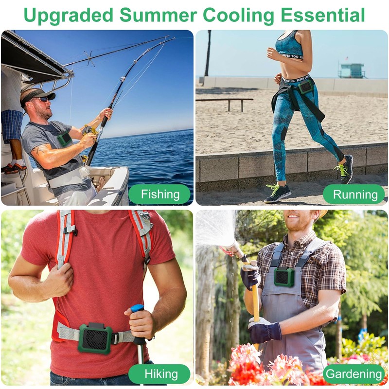 - 【Your Summer Essential】The portable and and lightweight design allows it to be easily placed in a backpack, clipped to a belt, hanging around neck or placed on your desk, keeping your hands free during indoor or outdoor activities. Perfect for hiking, fishing, running, camping, biking or outdoor work and travel, this outdoor waist fan keeps you cool and comfortable all day long. It's also an ideal choice for workers in construction, kitchens, farms, and warehouses.