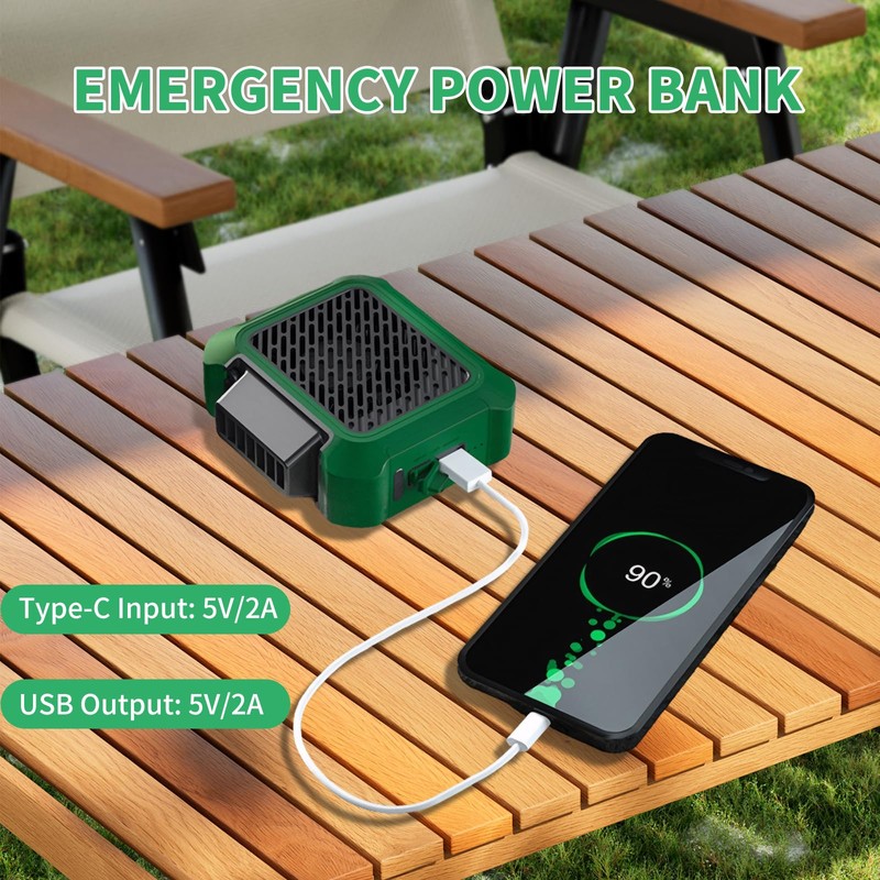 This small personal fan can also be used as a back up power bank with 5V 2A USB output for your phone in outdoor.