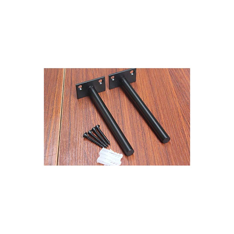 MHMYDZ 8 Pcs 6" Black Solid Steel Floating Shelf Bracket Blind Shelf Supports - Hidden Brackets for Floating Wood Shelves - Concealed Blind Shelf Support – Screws and Wall Plugs Included