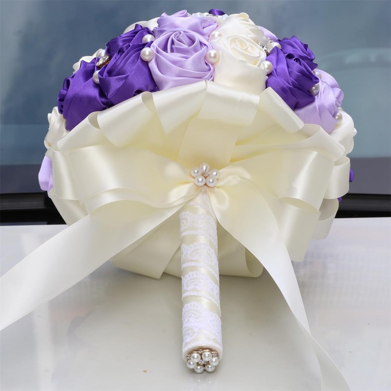 Mhojpik 7.5" Purple & Light Purple & Ivory Bridal Wedding Bouquet Round Bling...