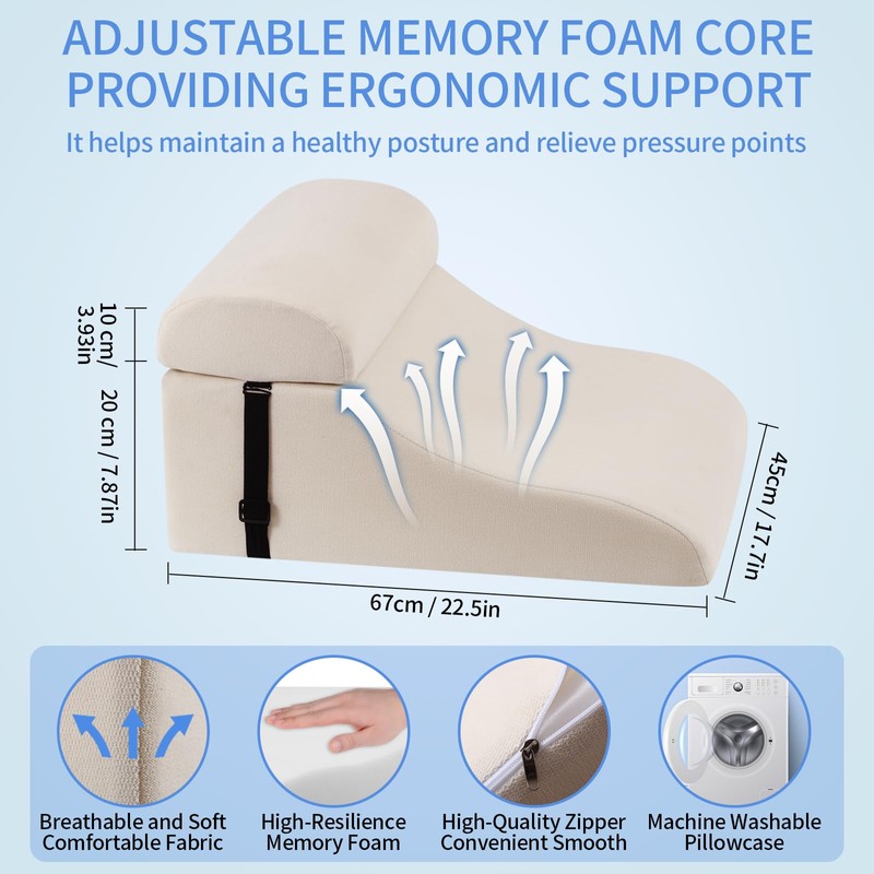 - Ultimate Comfort Bed Pillow: Suitable for both sitting and lying, our adjustable wedge pillow headboard maintains proper neck and upper spine alignment. It reduces muscle pressure as you sink into the comfort of durable memory foam.