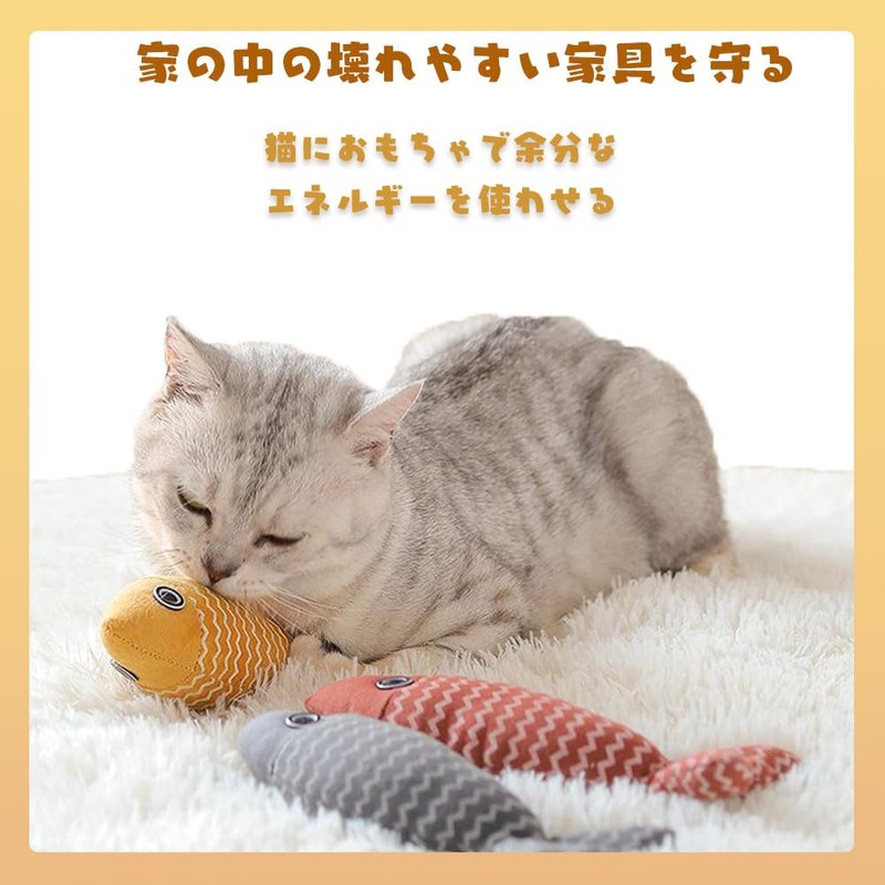MHSKNHW Cat Toy, Set of 3, Fish Shaped Chewing Alone, Chew Toy, Stress Relief, Plush Toy