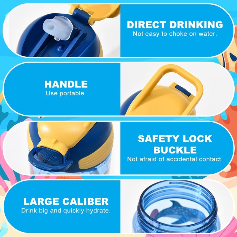 - Anti-accidental opening design: the leak-proof children's drinking bottle has a one-touch lid opening so your child can drink quickly with just one hand, and the button on this children's water bottle is lockable to prevent accidental opening of the lid. They can be safely transported in the backpack.