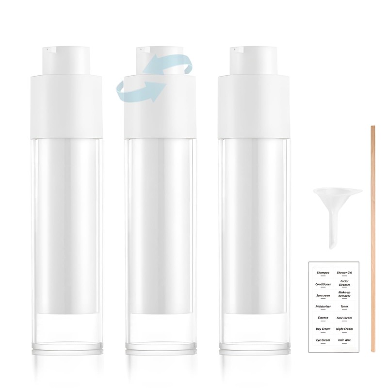 - Travel Pump Bottles: Compact airless pump bottles with hidden spray heads for easy skincare on the go.