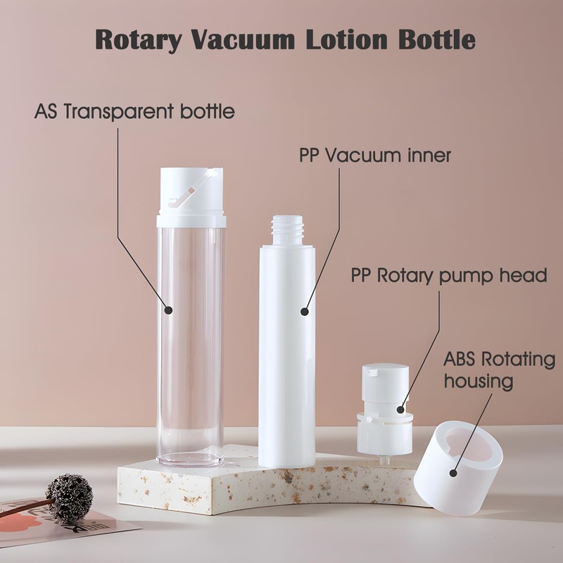 MHWL Travel Bottles 100ml Rotating Vacuum Set - 3-Piece Kit with Airless Pump Containers for Moisturizers - Travel Size Pump Bottles for Toiletries and Moisturizer Containers