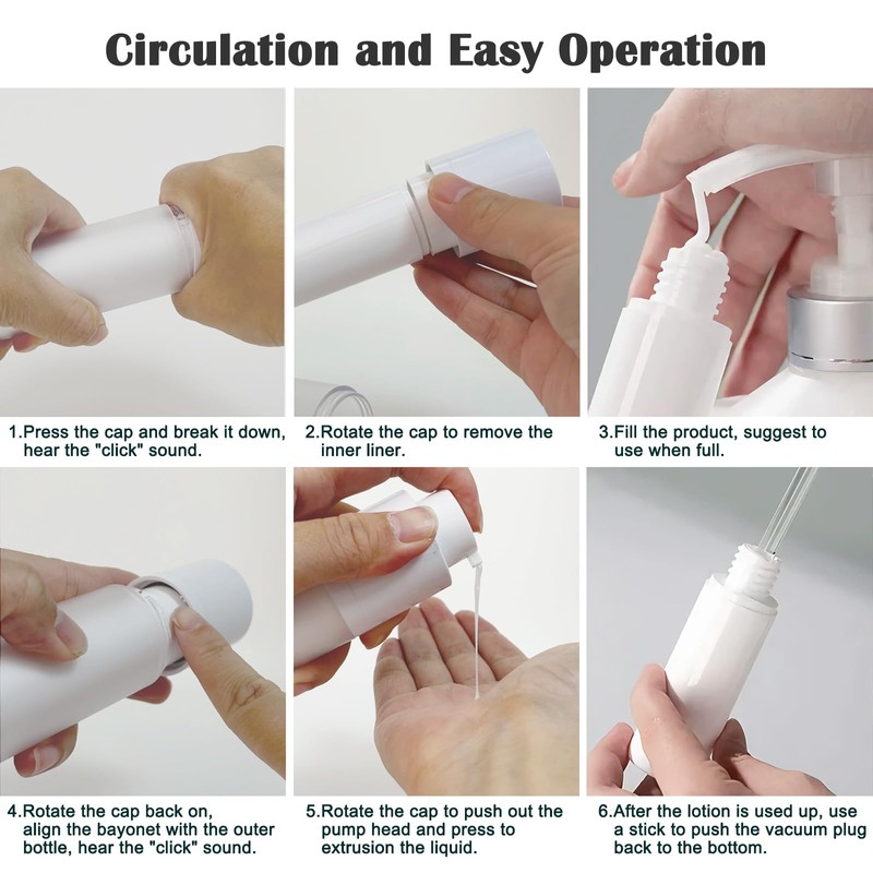 Our leak-proof airless containers feature a dual-layer vacuum seal, ensuring your liquids remain secure and fresh, free from leaks and wastage. The fully detachable design allows for easy cleaning and reuse, making it environmentally friendly and cost-effective.