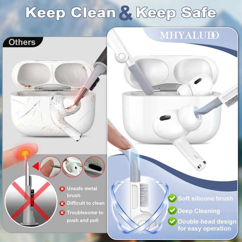 - 【Service & Package】: Lifetime 7-24 customer service with hassle free replacement or money back without return, Package include:AirPods Protective case*1, Cleaner Kit*1, Keychain*1.