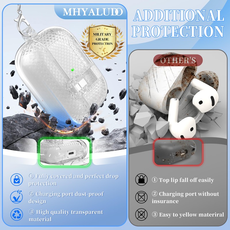 - Package includes: MHYALUDO for AirPods Pro 2 protective case x 1, cleaning set x 1, cute round buckle x 1