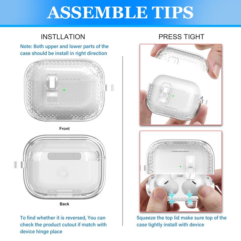 - 【Crystal Clear & Anti-Yellowing Tech】: Our case is made of high quality TPU material, the transparent design allows the AirPods to show their original color perfectly, so that it remains crystal clear and does not annoying yellowing like cheap cases. Say goodbye to the dull, "dirty plastic" look of most cases.