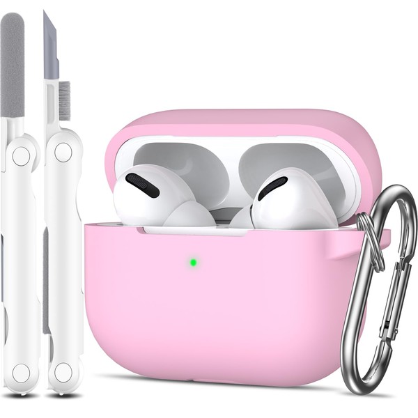 MHYALUDO for AirPods Pro Case Cover, Military Grade Anti-Fall Soft Silicone Shock-Absorbing Protective for AirPods Pro Case Skin Touch with Keychain and Cleaning Kit, Pink