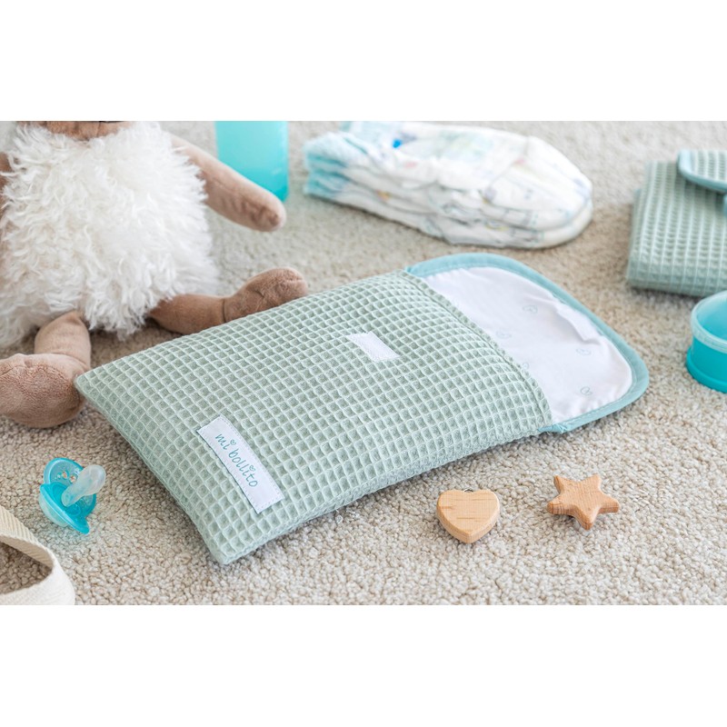 Mi bollito Set mit 2 wasserdichten Wickelunterlagen und Wickeltasche für Feuchttücher und Windeln, komplett in Spanien hergestellt (mintgrün)