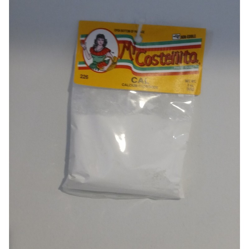 Lime or calcium hydroxide -obtained by the calcination of limestone and its subsequent hydration-, is the key ingredient that for centuries has been used to transform corn, and obtain the precious nixtamal. 3 oz Cal Mexicana_ calcium hydroxide. Condition is "New". Thank you for shopping.