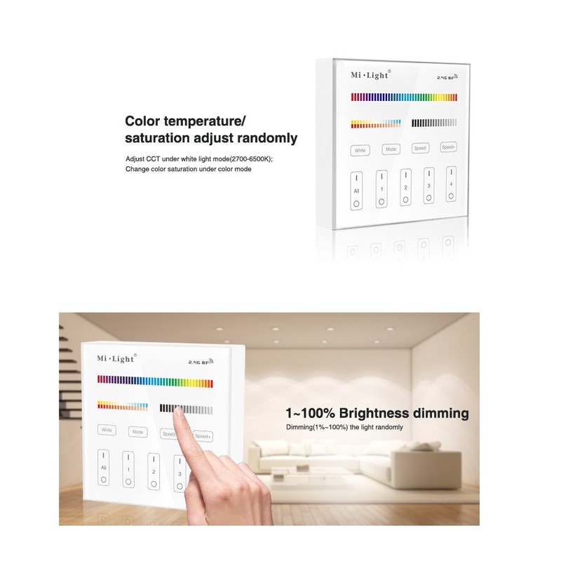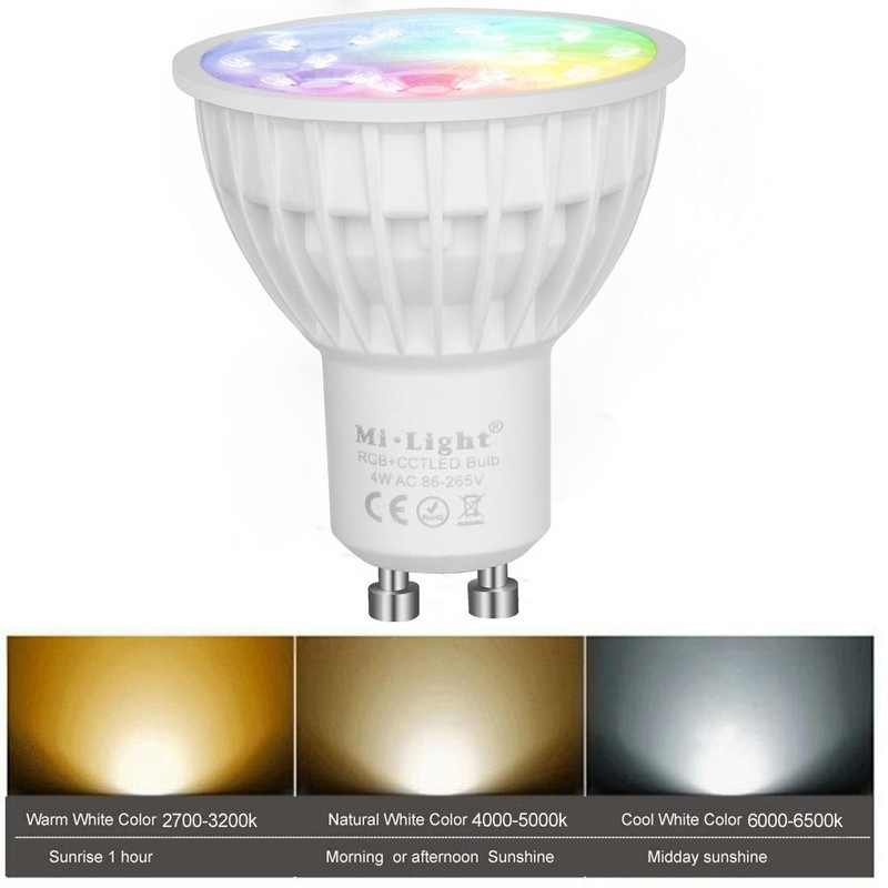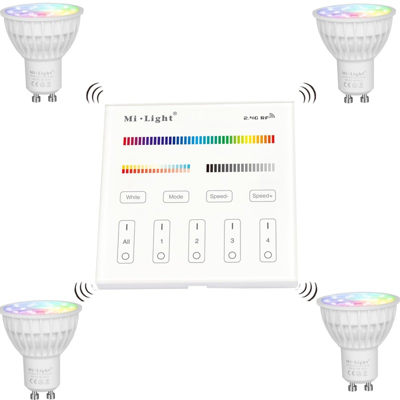 Mi-Light Wireless 2.4Ghz RF Touch Panel Control 4W RGB 16 Million GU10 Led Light Lamp Fully Dimmer CCT Kelvin 2700k-6500k Double White Spotlight