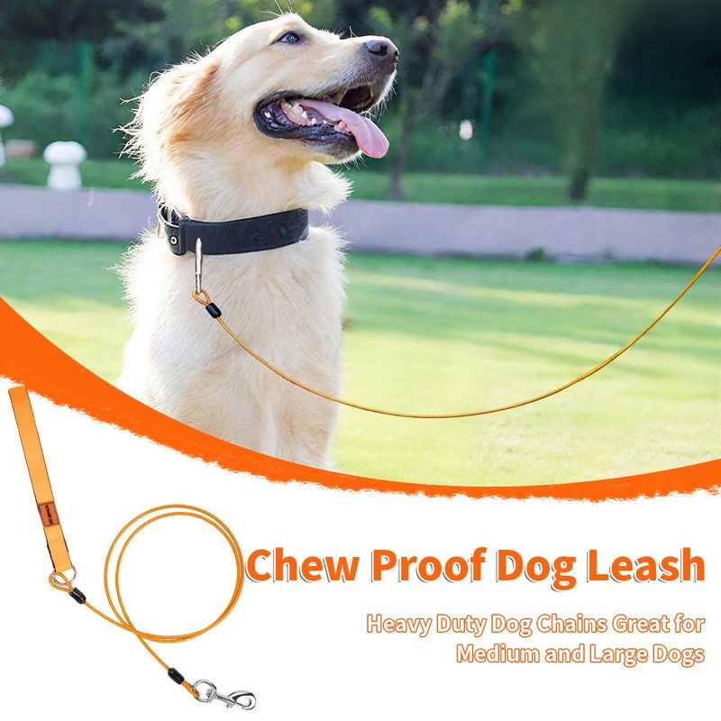 • 【Chew Proof & Durable】This anti chew cable lead is made of multi-strand stainless steel wire ropes, You won’t have to worry about your dog chewing through it. Lightweight yet sturdy enough for small, medium, and large dogs.