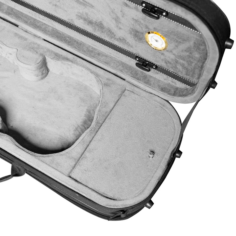 - 🎻 MULTIPLE POCKETS - Each of our violin instrument cases features 2 convenient bow holder, full-length rear pocket for holding music sheets, and 2 additional interior storage compartments for holding rosin, shoulder rests, tuner, or other instrument accessories. The built-in hygrometer lets players easily monitor humidity to protect your instrument.