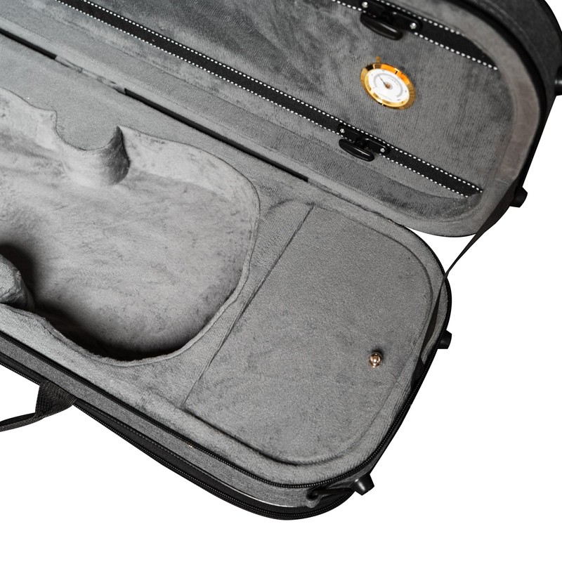 Protect your violin in style with the MI&VI Avanti Series 4/4 violin case. Engineered with a lightweight foam shell, soft satin velvet interior, and weather-resistant nylon exterior, this hard oblong case is built for daily use, travel, and secure storage. Designed for violinists of all levels, it includes a hygrometer, interior compartments, and music pocket—making it a perfect companion from lessons to performances.