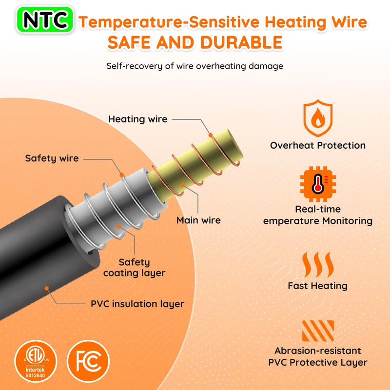 - 1️⃣ [Intelligent Dual-Wire System, Fast and Even Heating] This heated blanket twin features high-quality PTC and NTC heating wires, which heat up quickly and evenly in just 3 minutes, keeping you warm from head to toe. The PTC heating wire increases resistance as temperature rises, safely limiting heat flow. This allows your electric blankets to maintain your selected temperature all night long without overheating or sudden drops in temperature. This helps improve your sleep quality and ensure a comfortable winter.