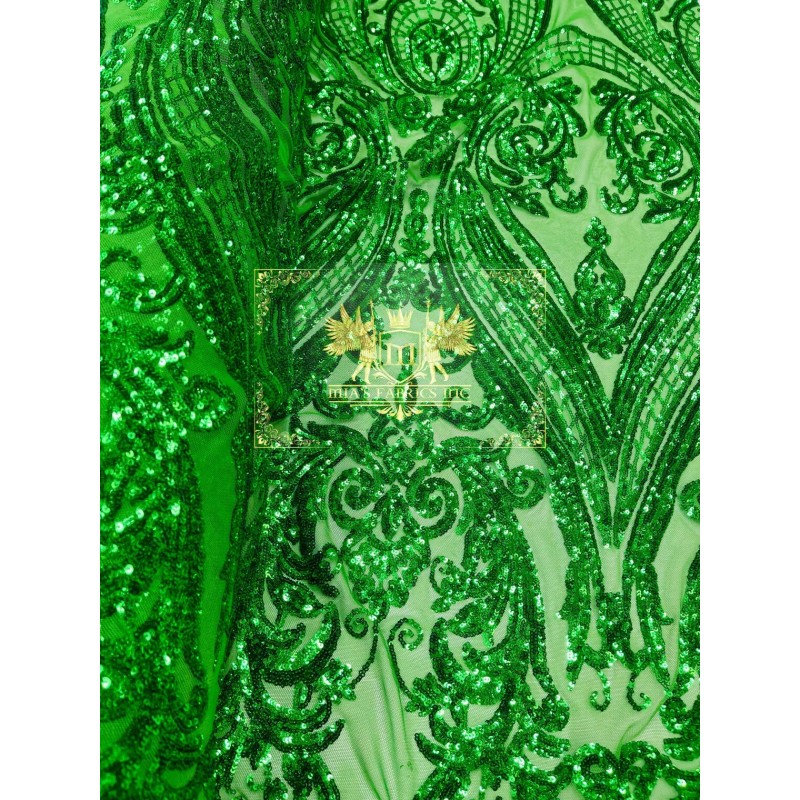 Mia Fabrics Inc. Damask Sequins - Emerald Green - Mesh Damask Design 4 Way Stretch Fabric