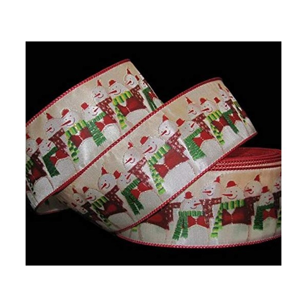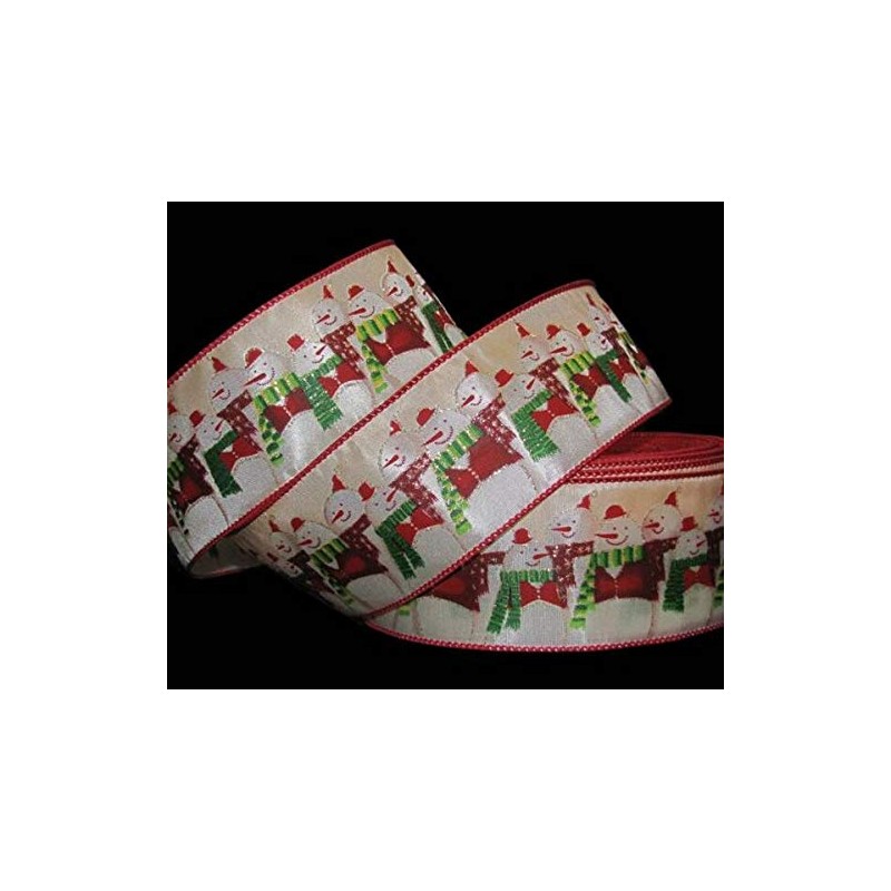 - 5 Yards Christmas Country Snowmen Snowman Folk Cute Wired Ribbon 2 1/2"W - By MIABE