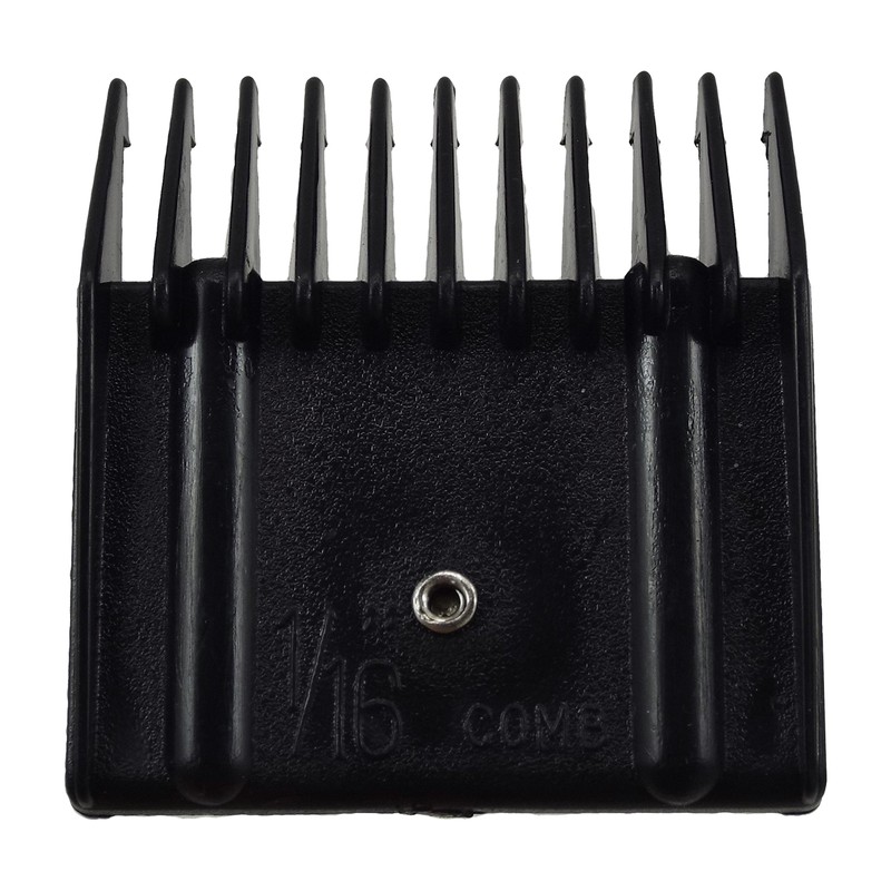 1/16" universal fitting comb. Specially designed to fit Oster clippers and almost any other clippers available. Spring loaded metal clip attaches to back of clipper blade and plastic comb snaps over front of blade for secure fit. Combs Are 1.875" Wide and fit Full Size Clippers. Does Not Fit Small Trimmers.