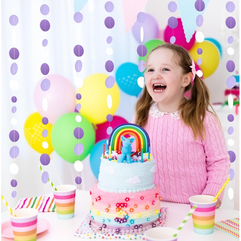 MIAHART 52 Feet Circle Dots Garland Lavender Paper Garland for Birthday Bridal Wedding Baby Shower Christmas Valentine Day Lilac Theme Party Decorations (Purple White)