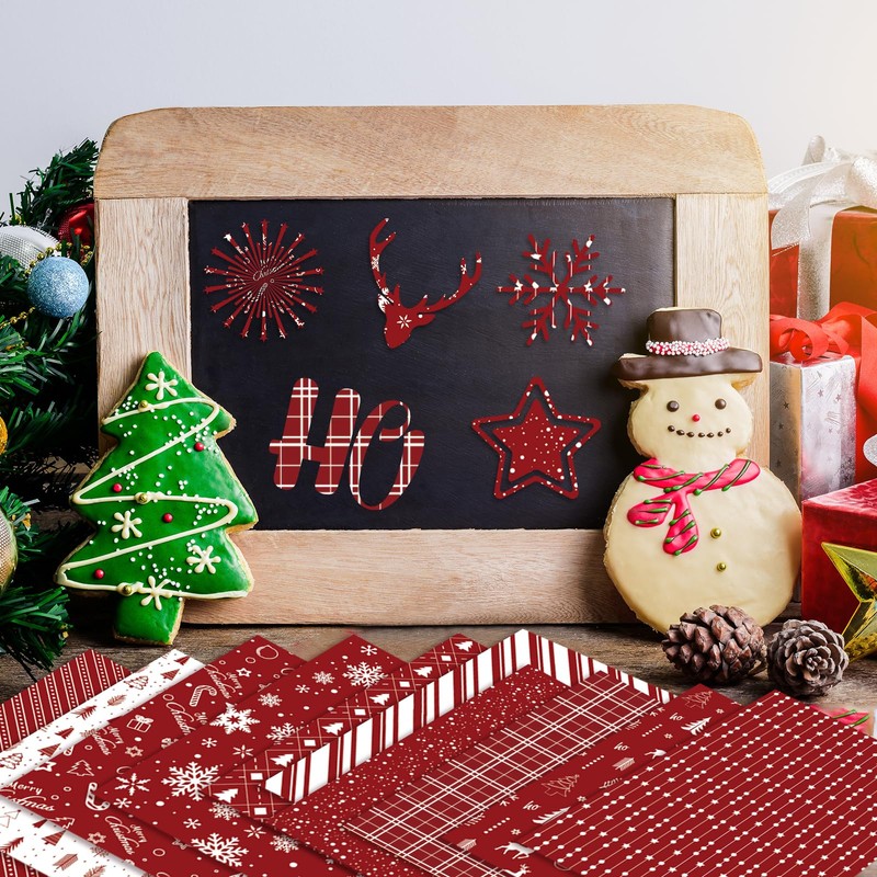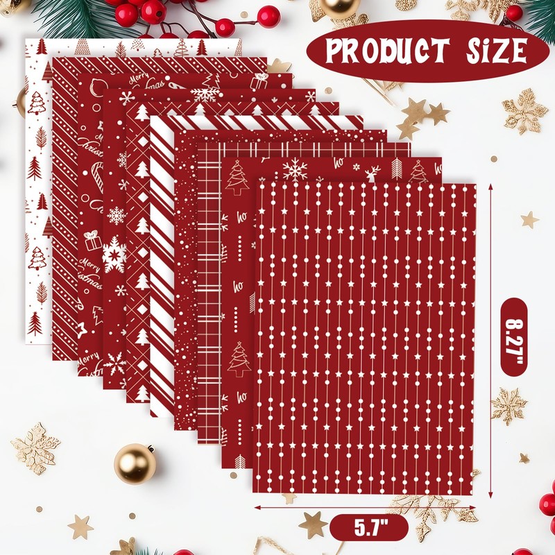 MIAHART 60 Pieces Merry Christmas Pattern Paper Set 10 Designs Festival Craft Paper for Card Making Scrapbook (Red & White, A5)