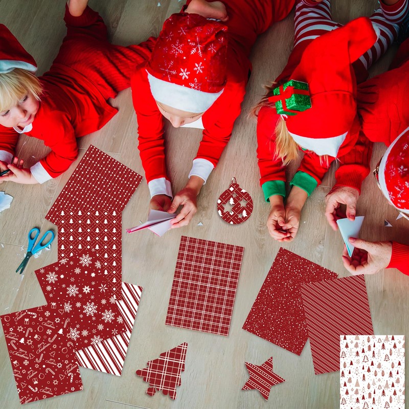 MIAHART 60 Pieces Merry Christmas Pattern Paper Set 10 Designs Festival Craft Paper for Card Making Scrapbook (Red & White, A5)