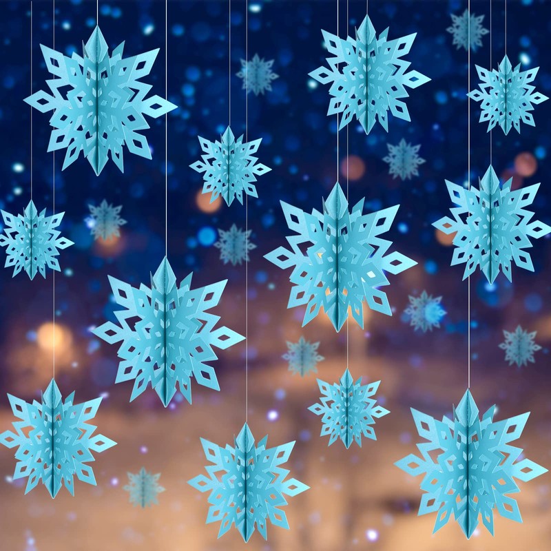 - Application: The blue Christmas hanging snowflake can decorate a Christmas tree, windows, bedroom, doorway, and classroom, easy to hang or use as the backdrop for the winter wonderland, Christmas, birthday, holiday party decorations