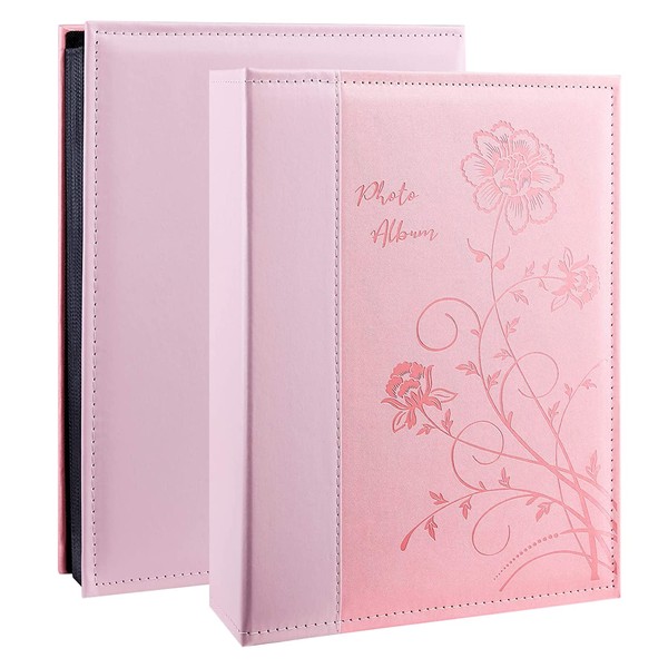 Miaikoe Photo Album 6x4 300 Photos Slip in, Extra Large Capacity Leather Cover Wedding Family Picture Albums Holds 300 Horizontal 10x15cm Landscape Photos(Pink)