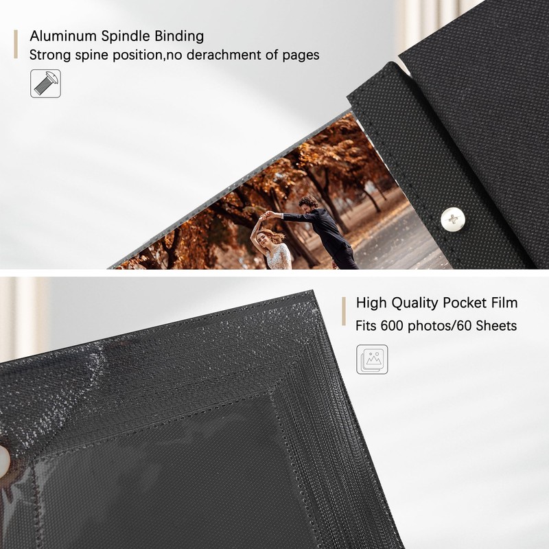 - Large Capacity Photo Picture Album: holds 600 4x6 photos pictures, totally 60 sheets / 120 pages, each page holds 3 horizontal and 2 vertical photos