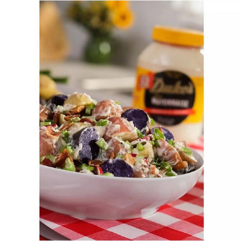 There's nothing better than the smooth, creamy texture and one-of-a-kind flavor of Duke's Real Mayonnaise, made with Eugenia Duke's original recipe since 1917. Duke's is the preferred mayonnaise of chefs and home cooks alike for three main reasons. Duke's contains egg yolksnot egg whitesfor a deliciously creamy texture. Cider vinegar gives Duke's Mayonnaise a distinctive tangy flavor. Finally, Duke's Real Mayonnaise has never contained sugar. Fans of the spread swear that Duke's tastes just like homemade mayonnaise, if not better. Duke's Mayonnaise got its start over 100 years ago when Eugenia Duke began selling sandwiches to the soldiers at Camp Sevier in South Carolina. The sandwiches were a huge hit, and Eugenia soon realized that her mayonnaise was the secret to the sandwiches' delicious flavor. She began packaging and selling her homemade spread in Greenville, South Carolina, and loyal fans have been spreading the word about Duke's Mayonnaise across the United States ever since. Duke's Mayonnaise is delicious on sandwiches, in salads, and even as a key baking ingredient. Duke's is gluten-free, certified kosher, rich in Omega 3-ALA, and compatible with keto and low carb diets. Try Duke's Real Mayonnaise today and see why Eugenia Duke's delicious spread has been the secret to great food for over 100 years. Delicious on sandwiches, in salads, and even as a key baking ingredient
