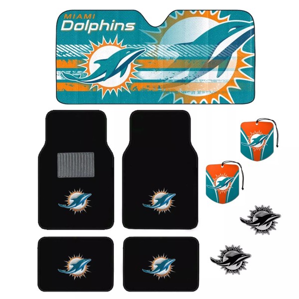 MIAMI DOLPHINS 4pc CARPET FLOOR MAT / SUNSHADE/ 2pc AIR FRESHERS /2pc EMBLEMS