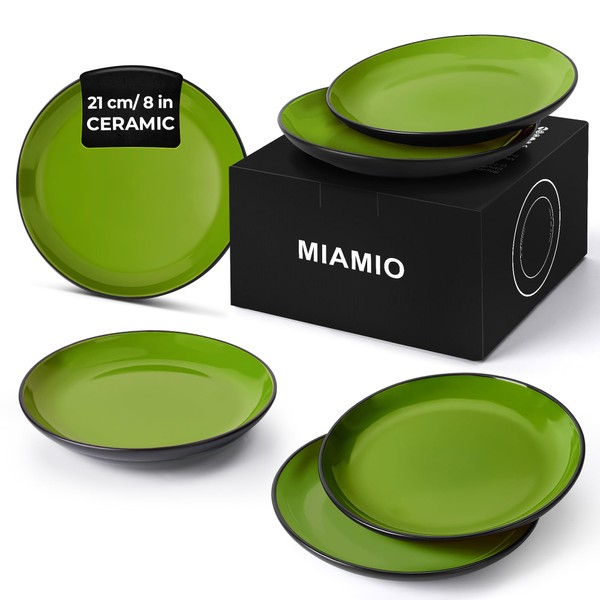 MIAMIO β 6 x Plate/Dinner Plate Set Stoneware Ceramic Tableware Set - Le Papillon Collection (Green, 8 Inch)