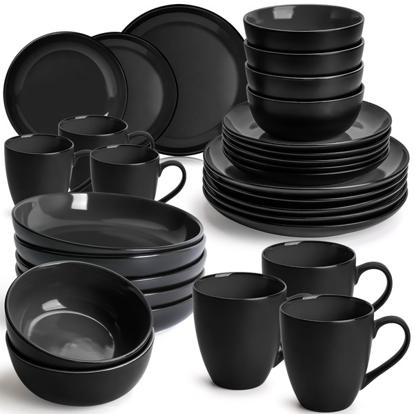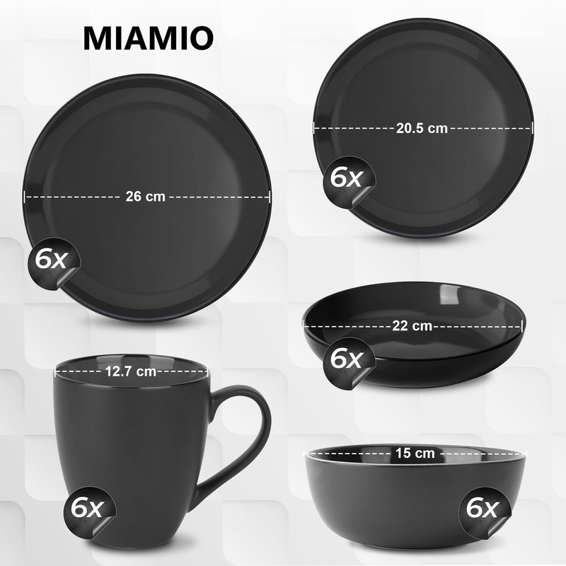 - ππππππππππ πππ β With the MIAMIO dinnerware set, every meal becomes an experience. The plates, with their matte black color, exude an elegant and high-quality look. Additionally, they feature a shiny and vibrant hue that beautifully presents the dish.