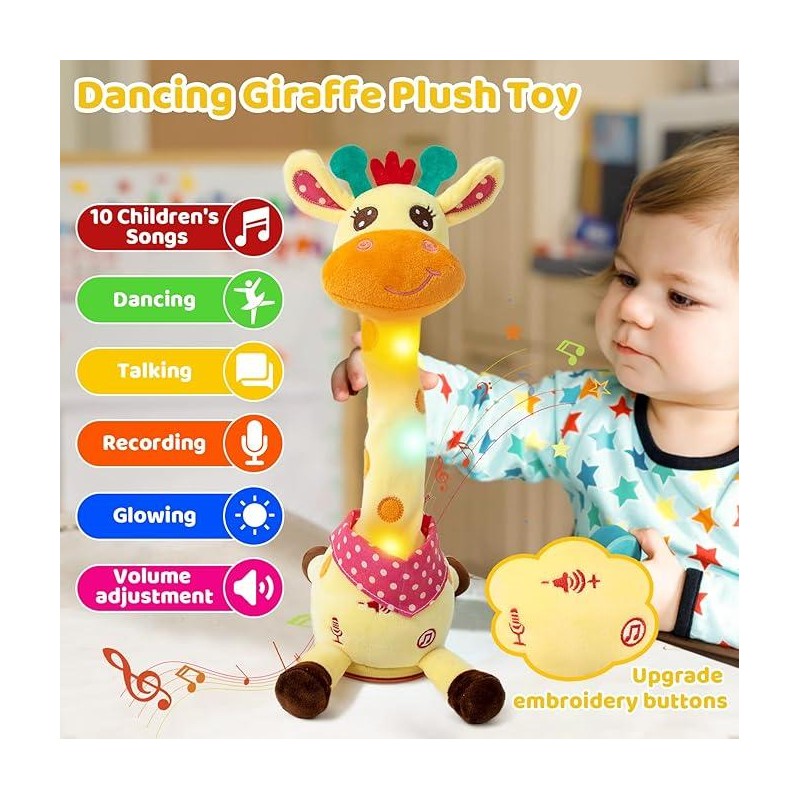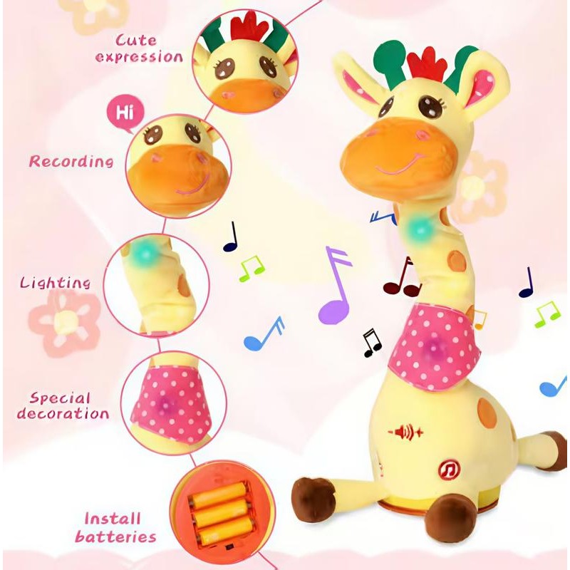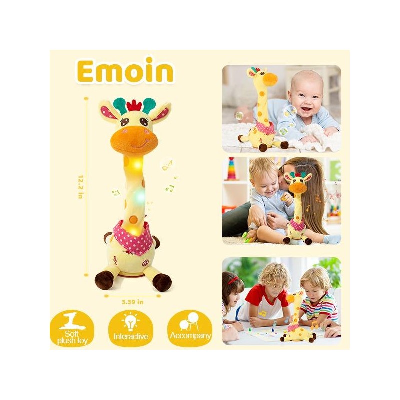 MIAODAM Dancing Talking Giraffe Toys Electronic Plush Toy Interactive Mimicking Toy with Recording and Repeating for Boys Girls Gift Children's Day Gift Musical Light Up Sensory Safe Soft Plush Fabric:_fawn