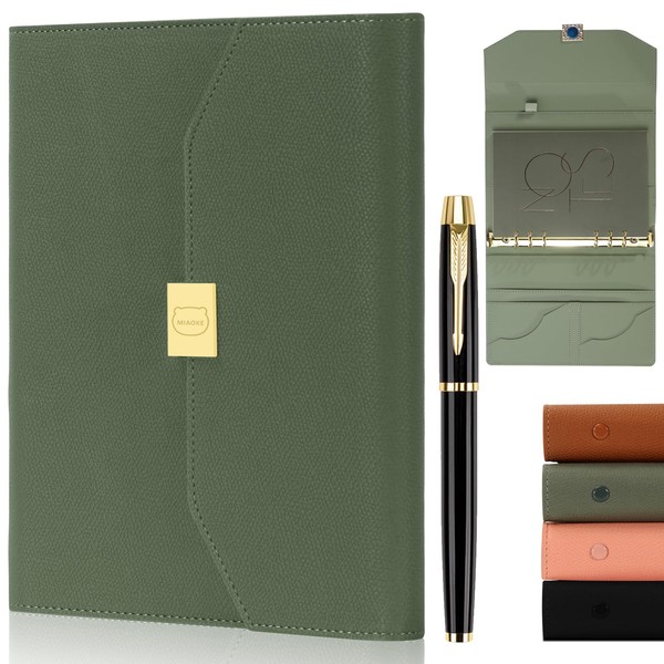 MIAOKE Work Notebook, Hardcover Leather Journal for Men and Women, Refillable 6-Ring Loose Leaf Folio Notebook, Pocket and Magnetic Closure, Suitable for Daily Writing, and Work