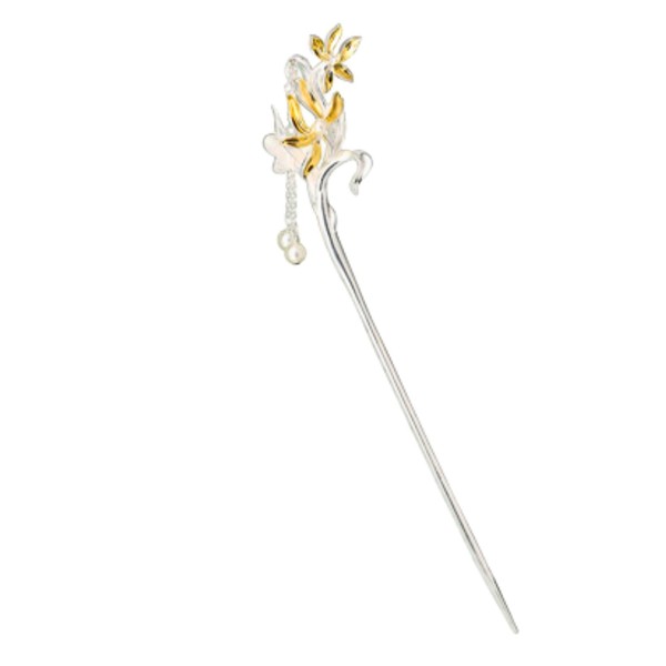 - 【商品特徴】蘭の花言葉「優雅」「美しい淑女」を体現した、気品あふれる一本挿しかんざしです。西洋では愛と美の象徴とされる蘭をモチーフに、銀メッキの繊細なラインで優雅に表現しました。金色の差し色が高級感を演出し、幸福が舞い込むとされる蝶のチャームと上品なパールが、動くたびに優しく揺れて視線を集めます。若い女性から30代、40代、50代の女性からもご購入されている事が多い、高級感と高品質を感じさせてくれる人気かんざしです