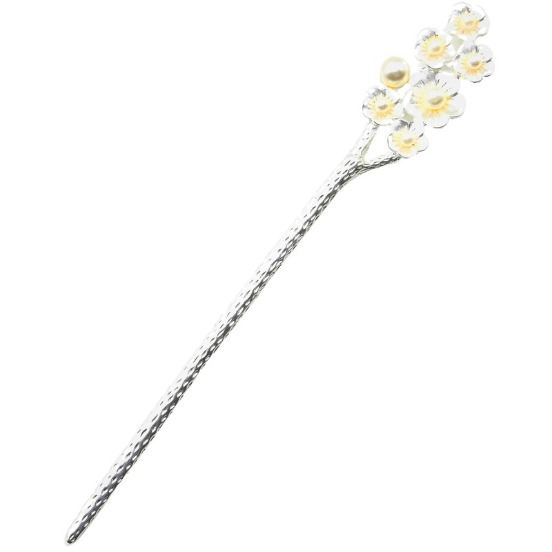 Miaomyao Kanzashi Kanzashi Kanzashi Single Piece Kimono Kimono Yukata Hair Ornament, Metal, Antique Flower, Cherry Blossom, Pearl, Hair Accessory (Silver)