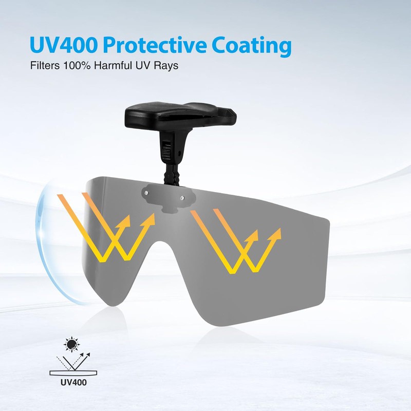 🔧✨ Durable and easy to wear. Our polarized sunglasses uses high-quality materials to ensure durability and long-lasting use. The clip-on design allows you to easily fix it on the brim, reducing the pressure of traditional glasses and providing you with a comfortable wearing experience.