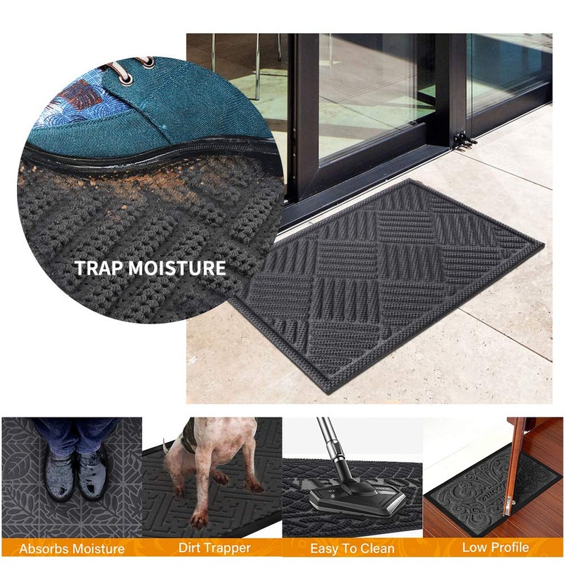 - 👍 CAPTURES DIRT: There are 3 sizes for you to choose from, 18"×30", 24"×36", 36"×60", 1/2" thick, suitable for indoor and outdoor occasions. Diamond and raised pattern doormat is designed to capture dirt, mud and other messy unwanted debris from tracking into your home. Easily to scrape the mud off under the shoes, absorbent. Also it's heavy duty can be used in wind and snow of winter.