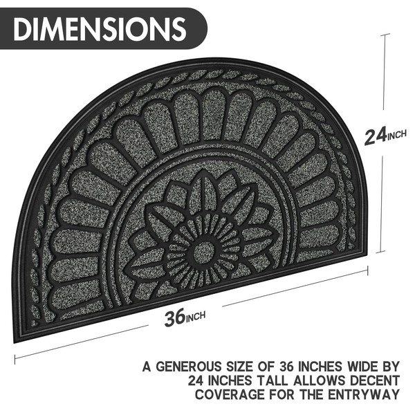 Mibao Mibao Half Round Door Mat, Non-Slip Welcome Entrance Way Durable Rubber Low-Profile Heavy Duty Doormat, Half Circle Mats for Garage, Patio, High Traffic Areas, 24" x 36", Gray