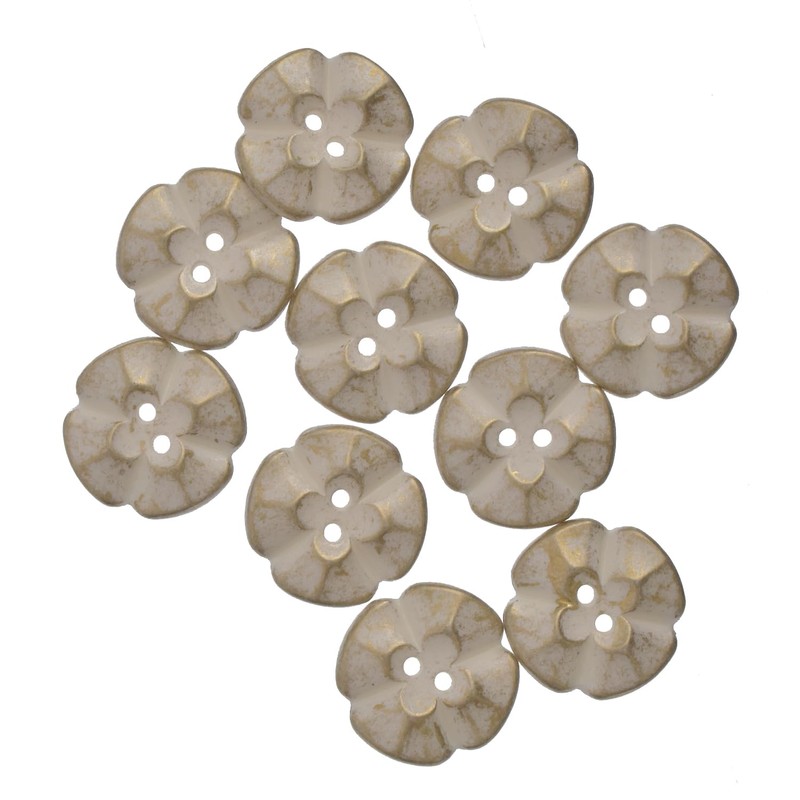 Mibo 10pcs ABS Metal Plated Button - 2 Hole - Flower Shape Design - 28L(18mm) - Matte Gold Patina