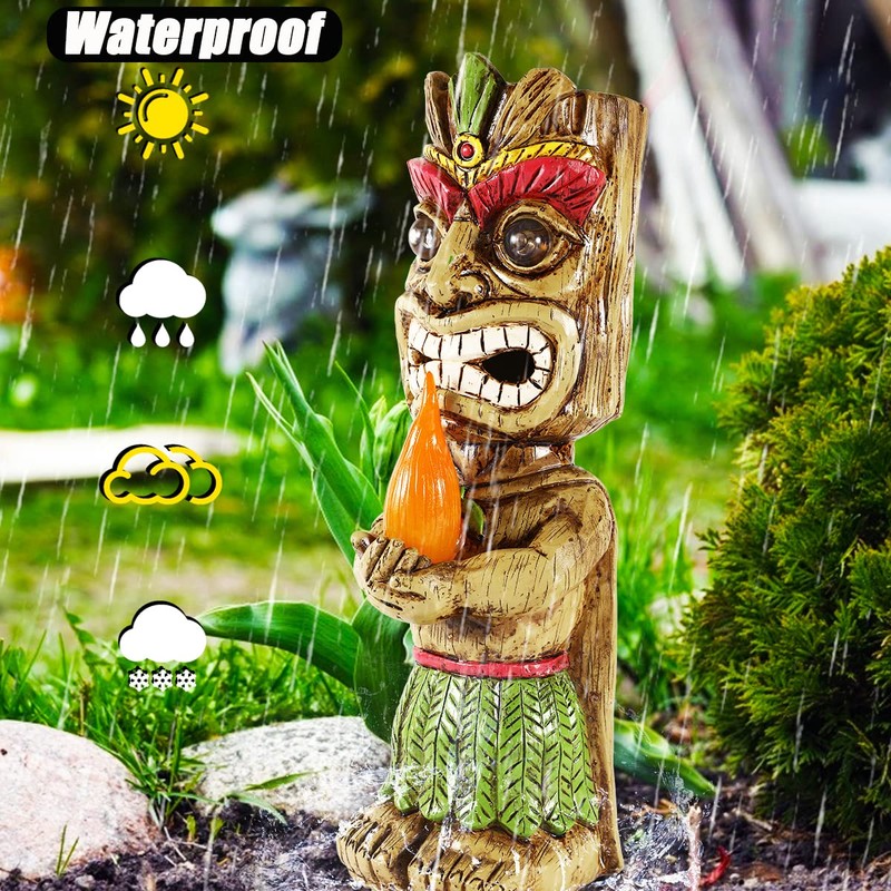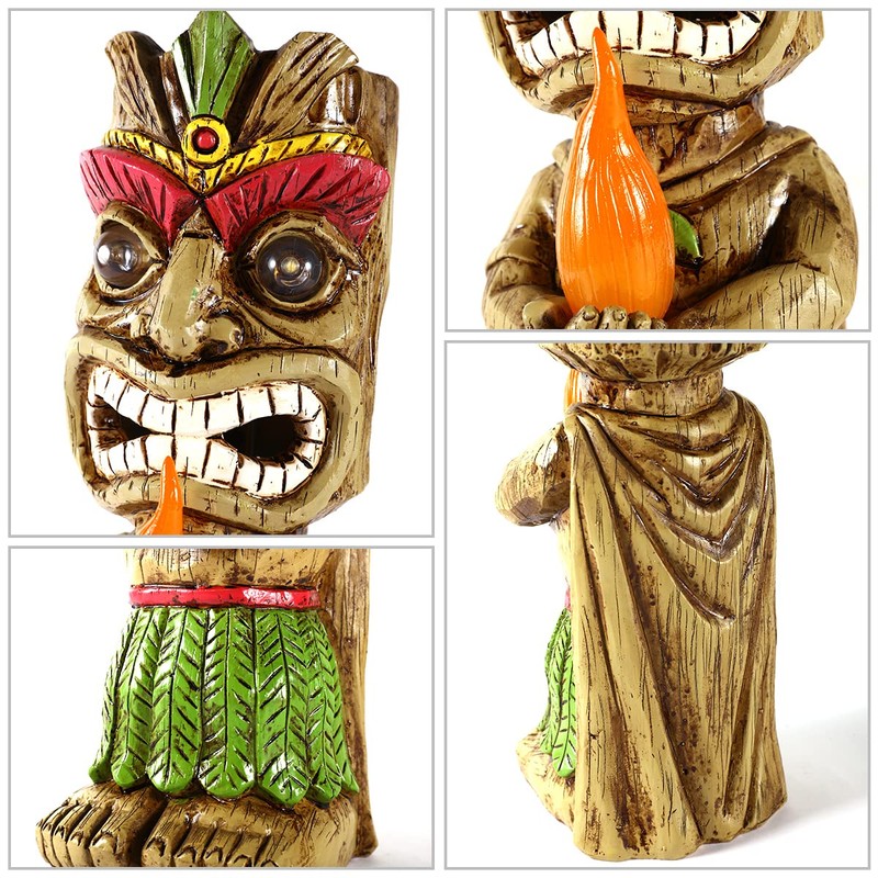 Tiki Touch Outdoor Decor-Solar Tiki Torches Figurine with Flickering Flame |Garden Statues for Patio, Bar, Yard, Backyard Decorations