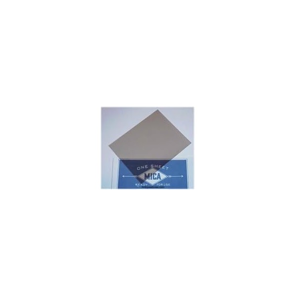 This Mica glass is 6" x 8" and . 005" thick. Mica is a paper thin, clear piece of glass that is often found in antique stoves. These stoves generally use multiple pieces within a grid to cover an entire door window. Mica stove glass is transparent, thin slices of mica stone, generally 0.003 to 0.005 inches thick, that can endure temperatures as high as 1800° F (982° C). Yet it can easily be cut to size with scissors, a paper cutter, or an Exacto knife.