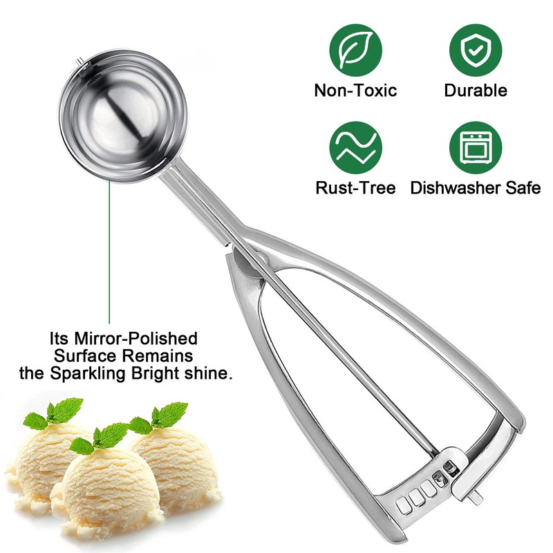 - 【Food-Grade Stainless Steel Icecream Spoon】Ice cream spoon is made of food-grade 304 stainless steel, which has good corrosion resistance and heat resistance that can contact food directly and non-stick. Not easy to ruste or crack. It is the best tool for digging hard ice cream. You can be confident with safety and durability of this kitchen tool.