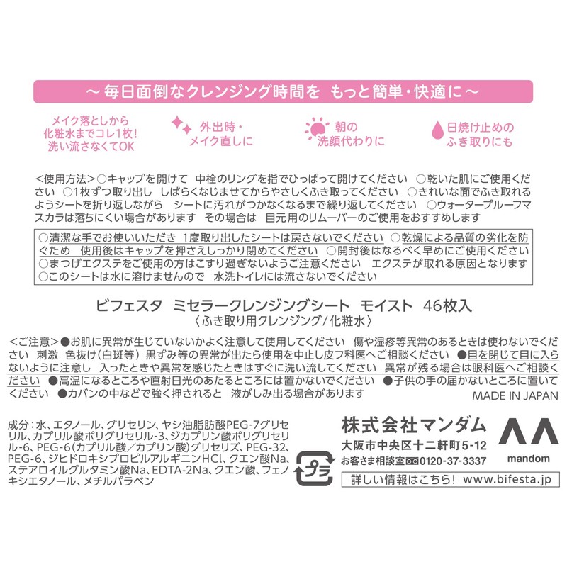 Micellar Cleansing Sheet, Moist Makeup Remover Sheet