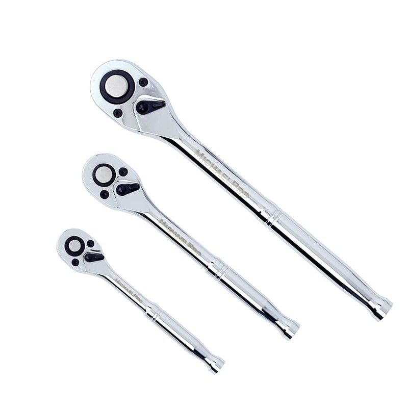 MichaelPro 3-Piece Quick-Release Ratchet Set with Teardrop Head, 90 Tooth Ratchet with Full-Polished Chrome Solid Handle, 1/4, 3/8, 1/2-Inch – MP006009