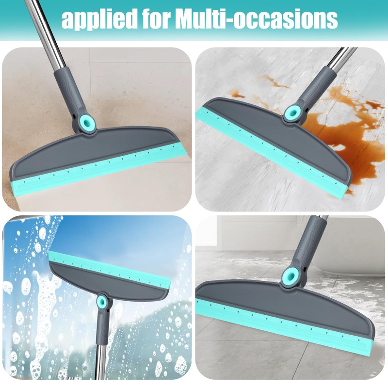 - Two Brooms: Both brooms can be used for sweeping and can also be used for different occasions, the Silicone Broom can sweeps up every shard of broken glass, liquid spills, fine dust, coffee granules, sugar, hardwood, windows, shower walls.